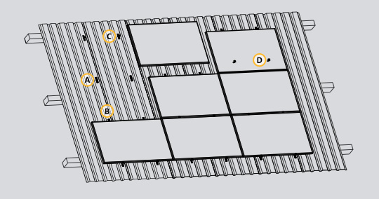 The clamp bases are fastened using self-drilling screws on the trapezoidal sheet. The width of the ribs of the trapezoidal sheets must be at least 27 mm.