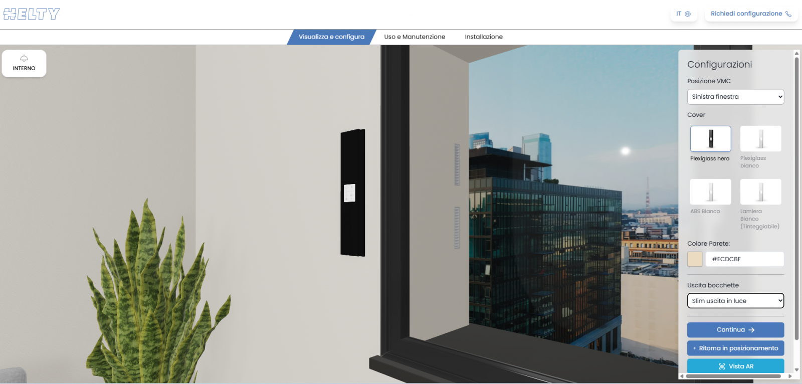 Per supportare professionisti e utenti finali nella comprensione e nella progettazione del sistema, Helty ha sviluppato un configuratore 3D interattivo dedicato a Flow40, accessibile direttamente dal sito dell’azienda. Si tratta di uno strumento digitale pensato per offrire un’esperienza esplorativa immersiva, che consente di visualizzare il funzionamento dell’unità e le sue modalità di integrazione nell’edificio in modo semplice, intuitivo e coinvolgente.