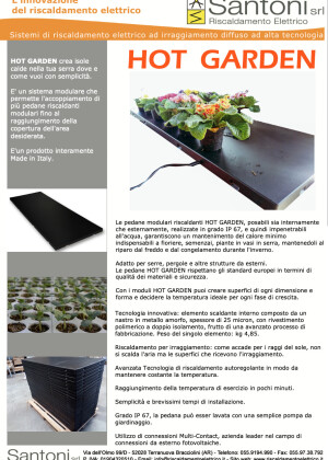 HOT GARDEN è un sistema modulare: più pedane possono essere collegate per coprire superfici di qualsiasi dimensione, permettendo di regolare la temperatura in base alle esigenze stagionali. L’installazione è semplice e veloce, la manutenzione praticamente nulla. Un prodotto interamente Made in Italy, conforme agli standard europei di sicurezza e qualità, pensato per il settore florovivaistico e l’uso domestico.