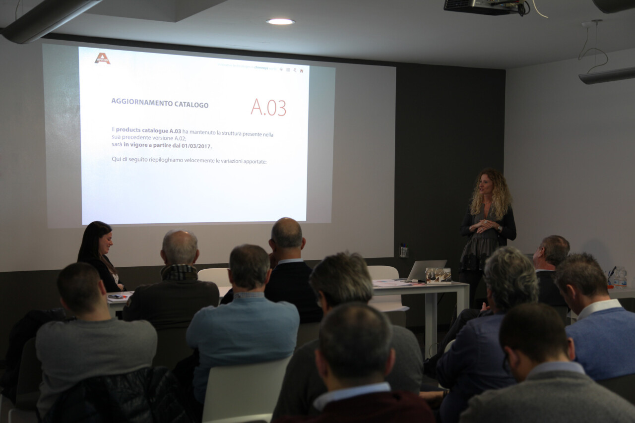 Federica Nalon, managing director, ha esposto la strategia commerciale complessiva per il 2017, ponendo particolare accento sugli strumenti offerti alla rete nel corso dello scorso anno per competere in un mercato complesso e difficile. In occasione del meeting sono stati presentati, inoltre, quelli che saranno gli aggiornamenti dell’attuale catalogo e che porteranno alla nuova edizione A.03 del products catalogue.