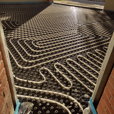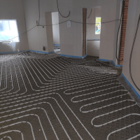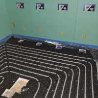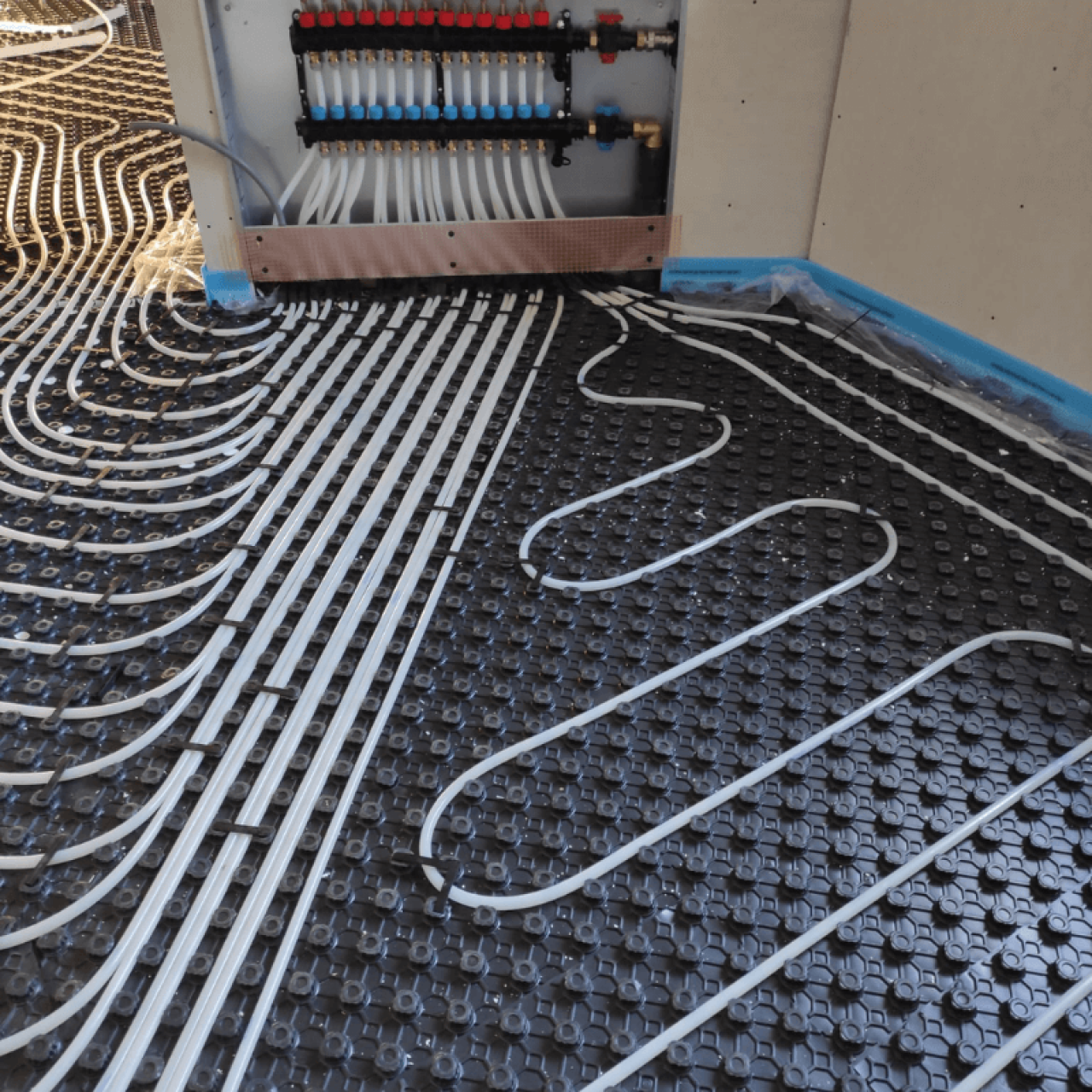 L’impresa installatrice ha potuto contare sul supporto diretto dell’ufficio tecnico Wavin, che ha fornito schemi progettuali e computi metrici dettagliati. Dopo la posa dei pannelli e dei tubi Polysuper PE-Xa multistrato a 5 strati, l’intervento è stato completato con il getto del massetto cementizio additivato con Fluterm, per garantire resistenze meccaniche elevate.