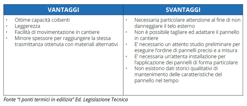 Non va inoltre dimenticato che gli stessi pannelli non possono essere tagliati in loco per adattarli all’applicazione finale in quanto verrebbe meno il vuoto tra telo e pannello stesso, che ne identifica e ne caratterizza l’elevata prestazione coibente.