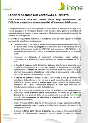 Legge di Bilancio 2018: sono molti gli emendamenti respinti, specie in tema di Ecobonus e Sismabonus. L'analisi di Rete IRENE.