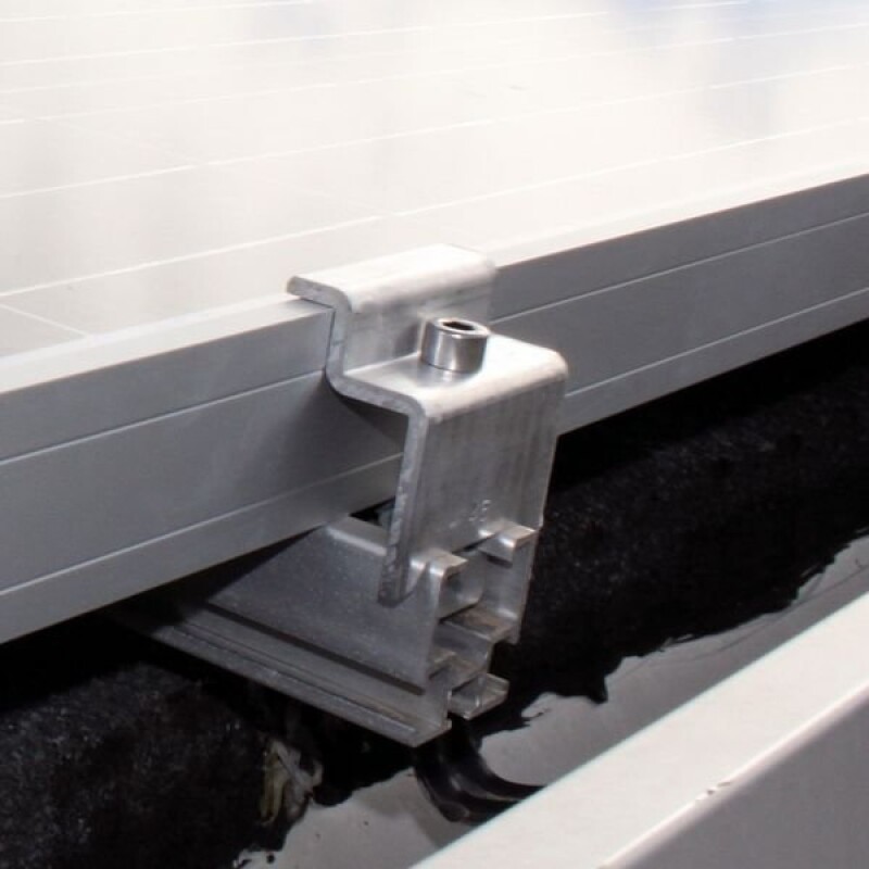 Per il fissaggio laterale dei pannelli fotovoltaici al profilo in alluminio.