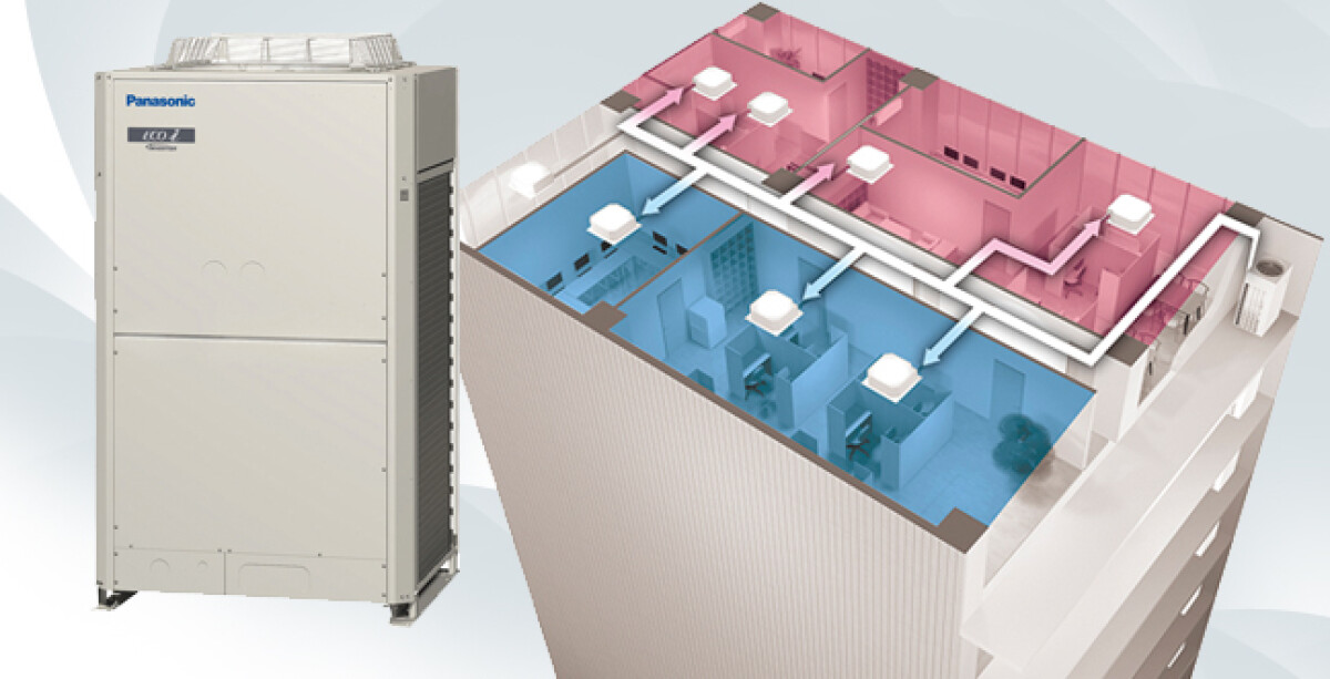 Panasonic ha ampliato la sua gamma di pompe a recupero di calore per il riscaldamento e raffrescamento dei progetti commerciali, come uffici, scuole ed edifici di ampie metrature con i più avanzati sistemi VRF ECOi a 3 tubi.
