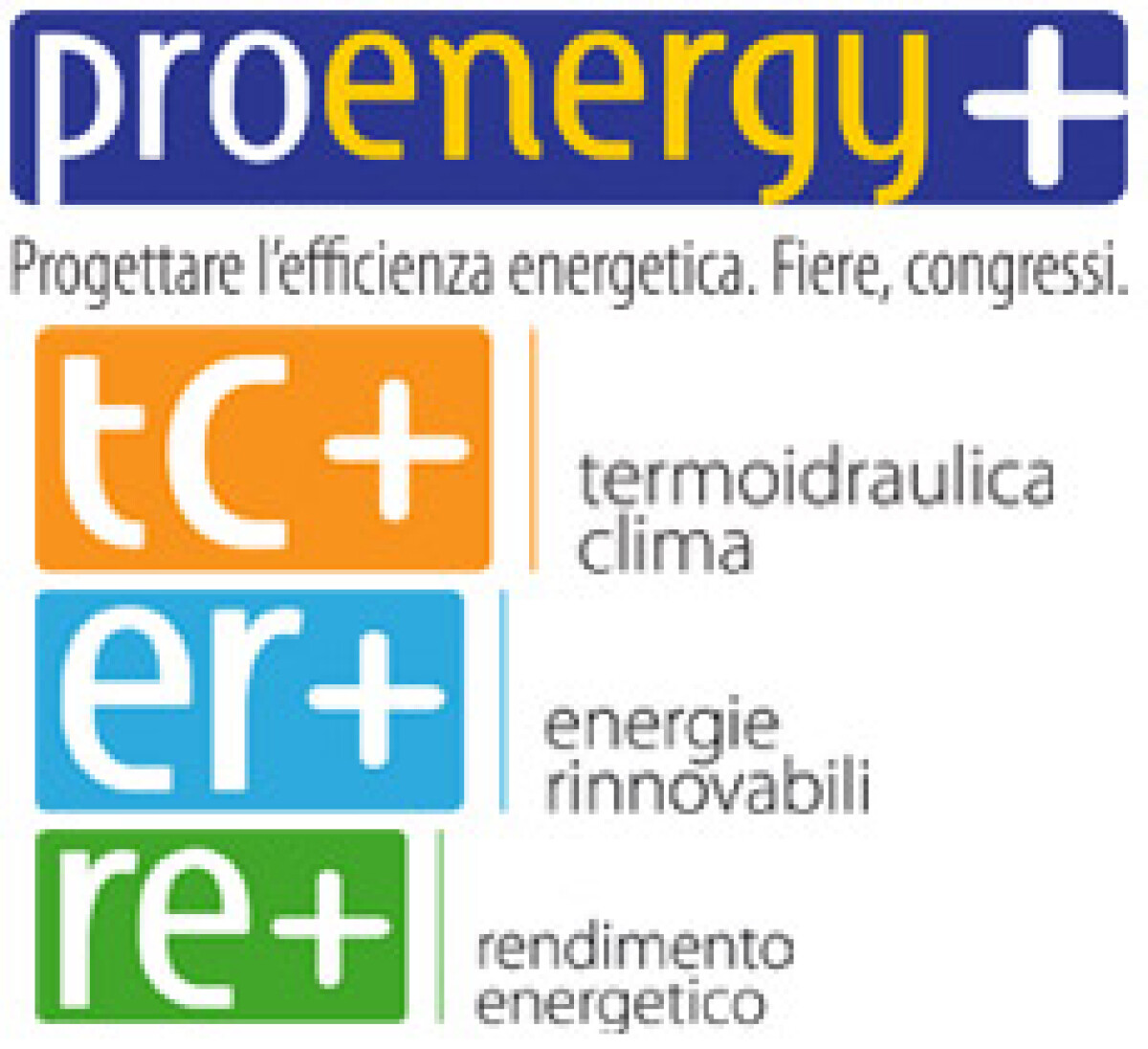 Per rispondere alle diverse esigenze legate al mondo dell’efficienza energetica, la fiera Proenergy+ si presenta suddivisa in tre aree specifiche: TC+ Termoidraulica Clima, dove saranno presenti aziende e novità del mercato della climatizzazione, riscaldamento e idronica, ER+ Energie Rinnovabili, incentrato sulle soluzioni di fonti rinnovabili per i consumi energetici degli edifici, RE+ Rendimento Energetico, con tutte le migliori soluzioni per l’efficienza energetica in edilizia.
