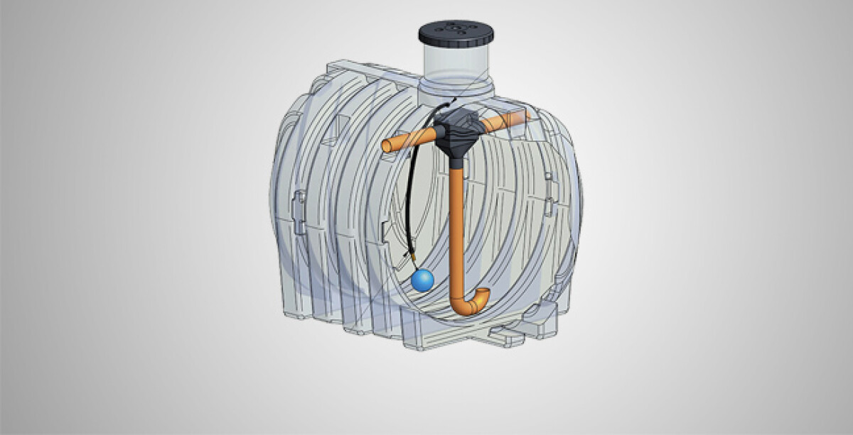 Una centralina composta da un quadro elettrico e da una pompa integrata controlla l’intero sistema dall’interno dell’abitazione. La centralina ha inoltre il compito di comandare l’afflusso dell’acqua potabile quando si esaurisce la riserva d’acqua piovana nel serbatoio.