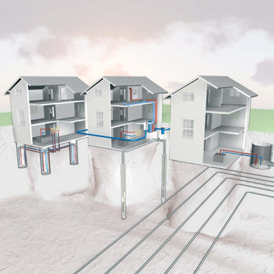 RAUGEO è il sistema geotermico di REHAU composto da tubi, sonde geotermiche verticali, collettori geotermici orizzontali, sonde elicoidali ed pilastri energetici, che consente di estrarre l’energia geotermica e utilizzarla per il riscaldamento ed il raffrescamento. A partire da una profondità di circa 15 – 20 metri rispetto alla superficie del terreno, si ha infatti una zona a temperatura costante, in cui il calore è fornito esclusivamente dal flusso termico proveniente dall’interno della terra, con un incremento medio progressivo di 1°C ogni 33 metri di profondità. Per sfruttare il calore terrestre vengono utilizzate in genere pompe di calore, che funzionano secondo lo stesso principio dei frigoriferi: analogamente, nelle tecniche di estrazione di energia dal terreno il calore viene ricavato attraverso un circuito chiuso.