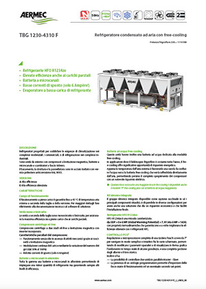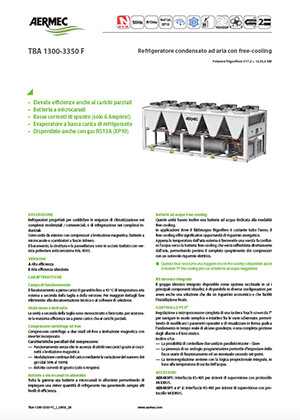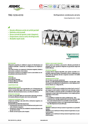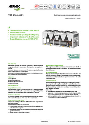 Nelle schede tecniche allegate potrai trovare maggiori informazioni sui refrigeratori aria-acqua TBA/TBG di Aermec.