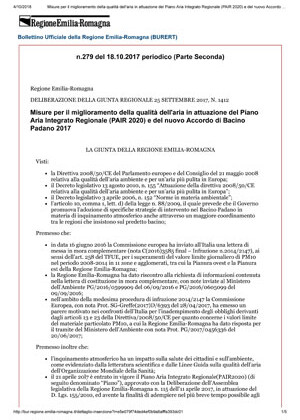 La deliberazione in questione è la n. 1412 del 25 settembre 2017, e individua nel 1 ottobre la data da cui decorreranno alcune restrizioni adottate in attuazione del Piano Aria Integrato Regionale (PAIR 2020) e dell’Accordo di Bacino Padano 2017.