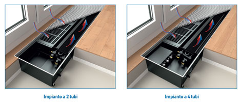 Il ventilconvettore Carisma Floor è disponibile in due versioni: a 2 e a 4 tubi.