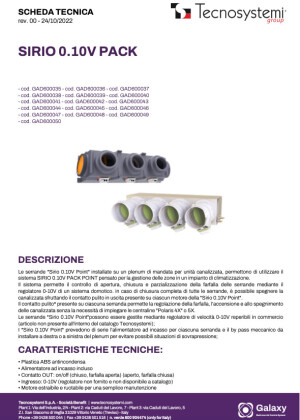 Il sistema Sirio 0-10V Pack utilizza serrande Sirio 0-10V installate su un plenum di mandata per unità canalizzata, consentendo la gestione delle zone di un impianto di climatizzazione.
