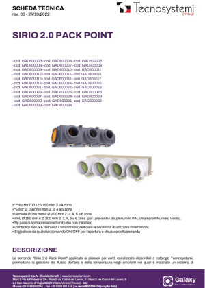 Il sistema Sirio 2.0 Pack Point combina le serrande Sirio 2.0 con i plenum per unità canalizzate Tecnosystemi, consentendo la gestione del flusso dell’aria e della temperatura negli ambienti serviti.