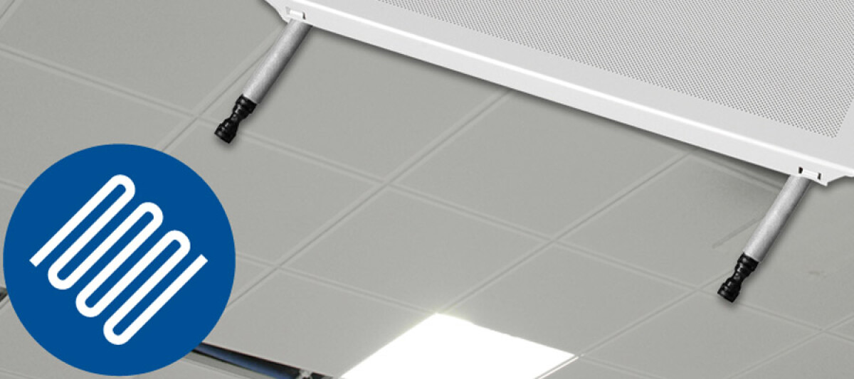 Soffitto radiante b!klimax+ con Quadrotti metallici HP: la climatizzazione radiante per uffici, ospedali e ambienti commerciali.