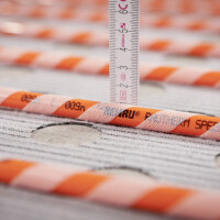 Sulla superficie invece vi è uno strato di tessuto che consente un fissaggio stabile e sicuro del tubo RAUTHERM SPEED K, che viene semplicemente srotolato e premuto con il piede sul pannello, senza attrezzi specifici e in un solo passaggio, lasciandosi guidare dalla struttura forata corrispondente ad una griglia di riferimento di 5 cm e multipli.