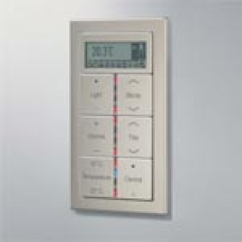 Il controller ambientale è disponibile nella versione a 4 o 6 canali che permettono di controllare 8 ovvero 12 funzioni, il display dispone di numerosi simboli per una visualizzazione chiara delle funzioni di base, quali riscaldamento e raffreddamento. I tasti del controller sono disponibili senza scritta, con simboli o con superficie scrivibile. Simboli e scritta vengono stampati, incisi a macchina o impressi con il laser.