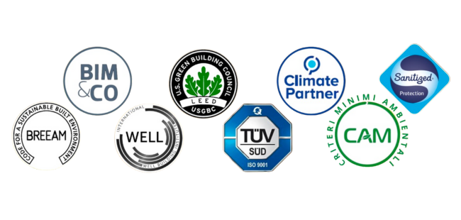 - Certificazioni internazionali di green building: contribuzione ai rating LEED®, WELL™ e BREEAM®.