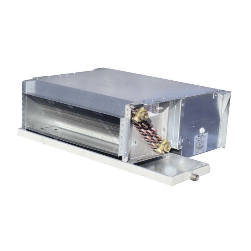 Batteria ad acqua in tubo di rame DN 9,52 mm (⅜") a ranghi sfalsati, alette in alluminio ad alta efficienza, disponibili per impianti a 2 tubi (3 ranghi o 4 ranghi, freddo/caldo) e per impianti a 4 tubi (3 ranghi in freddo e 1 rango in caldo). Completa di robusti collettori filettati Gas Femmina DN ¾" e DN ¾+½" (impianti 2T e 4T) e valvolina di sfiato e drenaggio manuali. I collettori d'alimentazione possono essere forniti sia sulla destra che sulla sinistra dell'unità e sono, comunque, facilmente modificabili in cantiere.