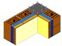 I ponti termici misti o ibridi sono caratterizzati dalla coesistenza delle due situazioni precedenti. Un esempio tipologico è quello caratterizzato dalla presenza di un pilastro posto nell’angolo e cioè all’incrocio tra due pareti perimetrali esterne. |