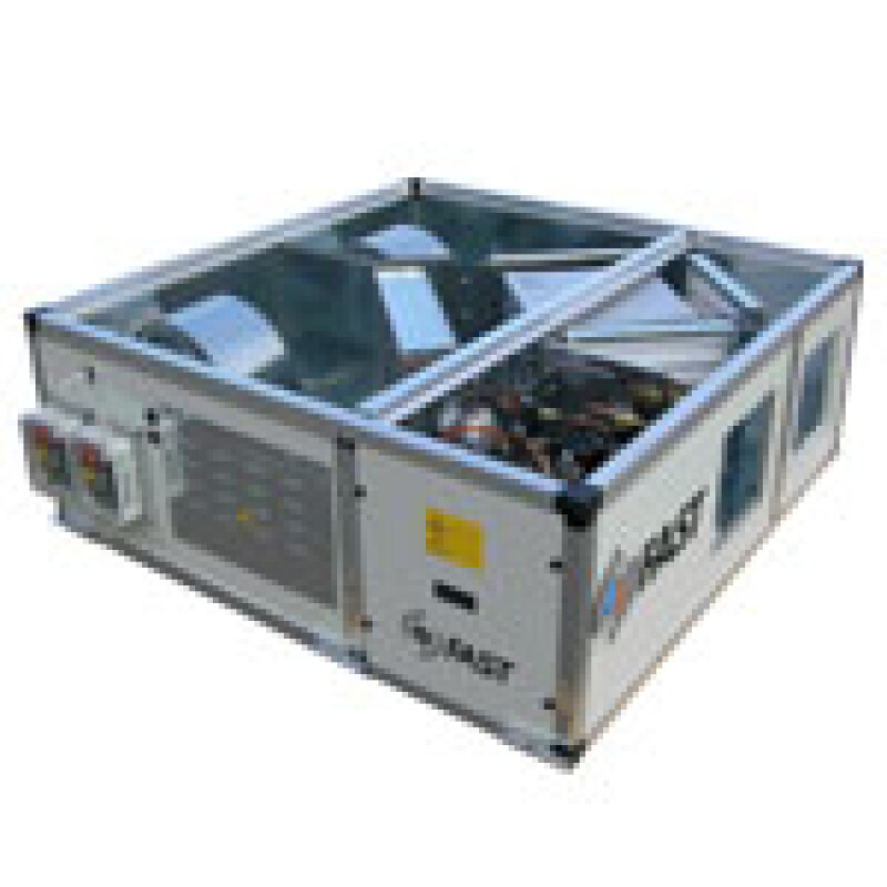 Le unità RHE sono macchine particolarmente efficienti in quanto provvedono al ricambio dell’aria utilizzando un recuperatore di calore a piastre a flussi incrociati a elevato rendimento (oltre l’80%) unito a un circuito frigorifero in pompa di calore senza unità esterna operante con fluido refrigerante ecologico R410A.