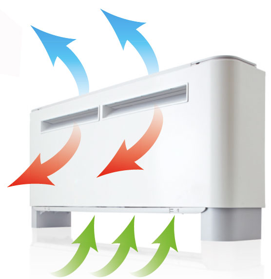 Secondo questo sistema nella stagione invernale l'aria calda viene indirizzata verso il pavimento, mentre d'estate l'aria fresca viene indirizzata verso il soffitto. L'utente può scegliere in qualsiasi momento la mandata dell'aria in cui dirigere il flusso. Massimo comfort acustico garantito grazie all'assenza di picchi di rumore.